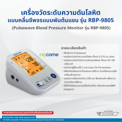 เครื่องวัดความดัน รุ่น RBP-9805 แม่นยำด้วยเทคโนโลยี Pulsewave ที่ทันสมัย รองรับการวัดค่าความดันโลหิต ตั้งแต่ 0-270 มม. ปรอท